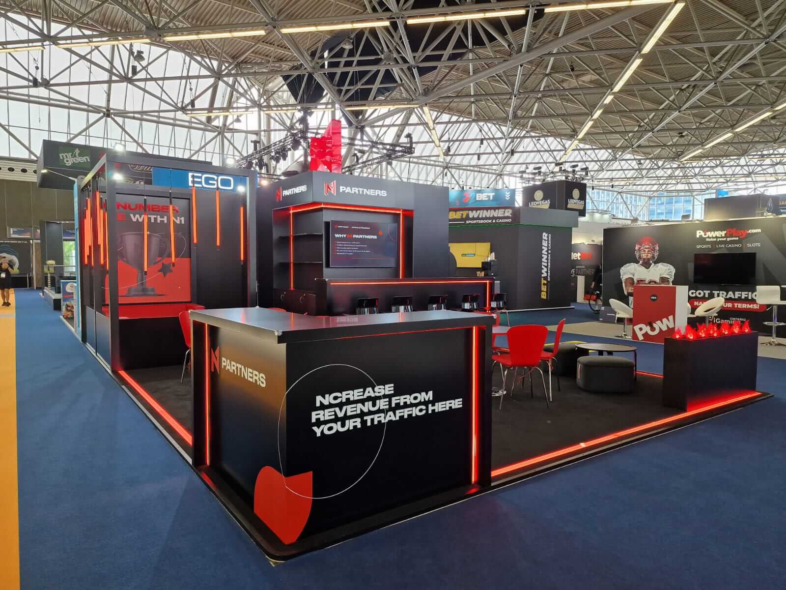 We have been producing custom exhibition stands for many years and have delivered projects for a wide range of exhibitions and trade shows. Our custom exhibition stands are developed and produced on a fully project-based basis. Each stand is designed according to specific requirements, taking into account branding, functionality, space constraints, logistics, and installation conditions. The development and production process is coordinated by AP-Print. Where required, we collaborate with selected long-term partners for selected production stages.