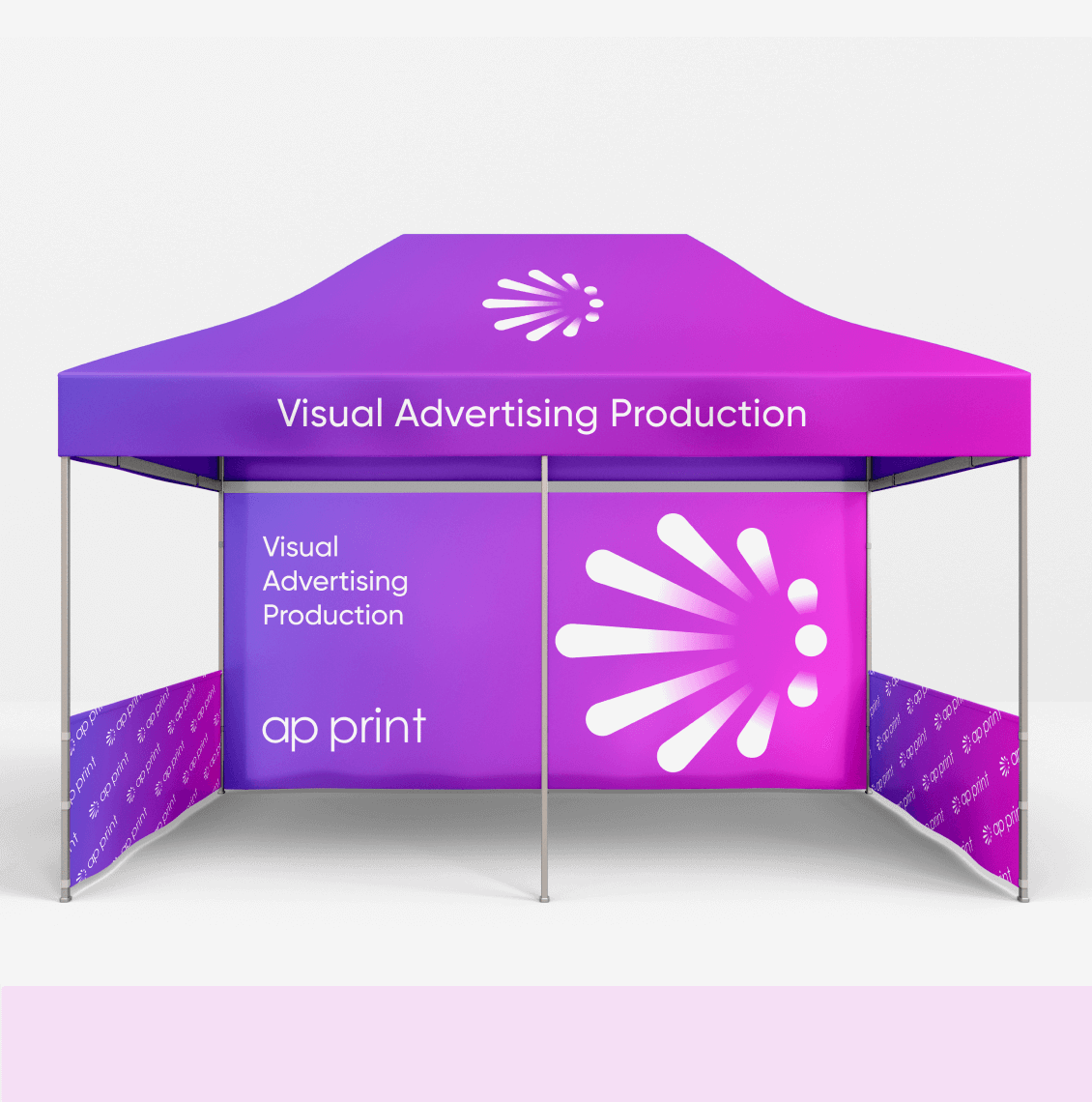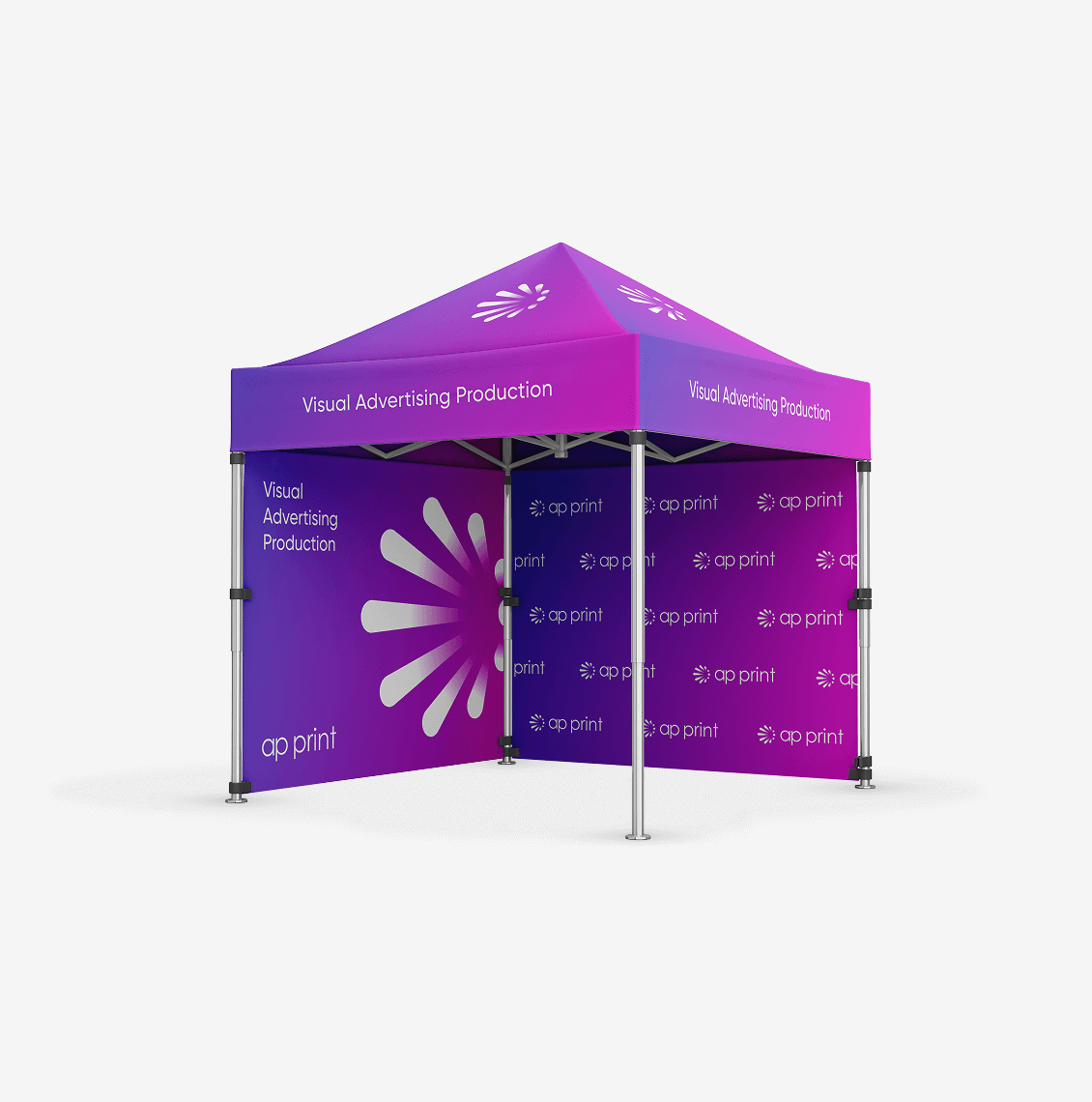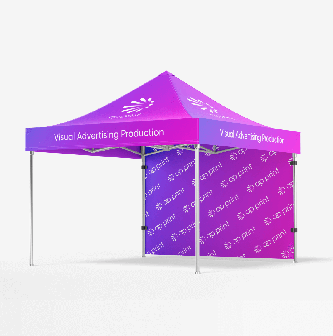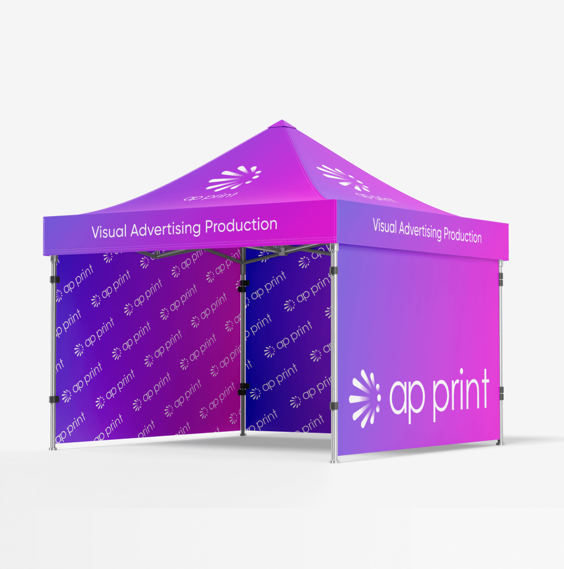 Frames are available in aluminium or steel, both powder-coated for a clean and durable finish. All tent structures use a reinforced hexagonal profile, offering greater strength and stability than standard rectangular frames. We offer four different sizes to match your space and visibility requirements.