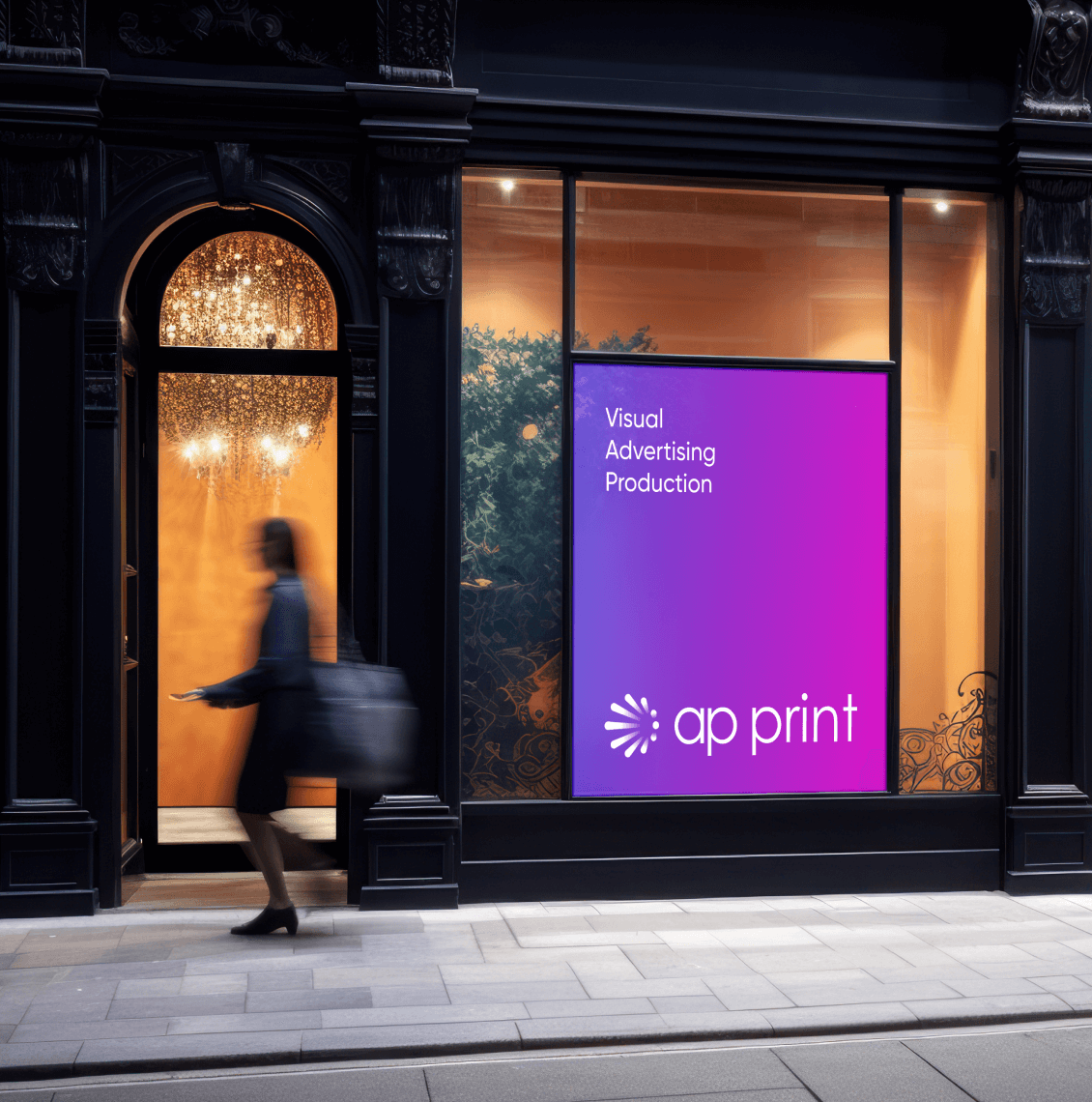 Indoor promotional graphics: Posters, information boards, temporary displays, and retail communication elements.