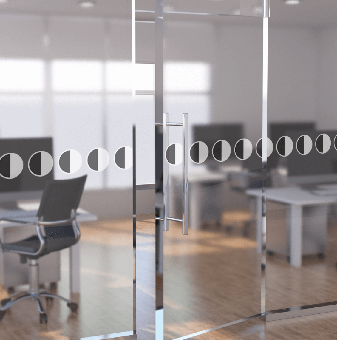 Public buildings and corporate spaces: Mandatory safety markings for fully glazed areas, ensuring visibility and compliance.